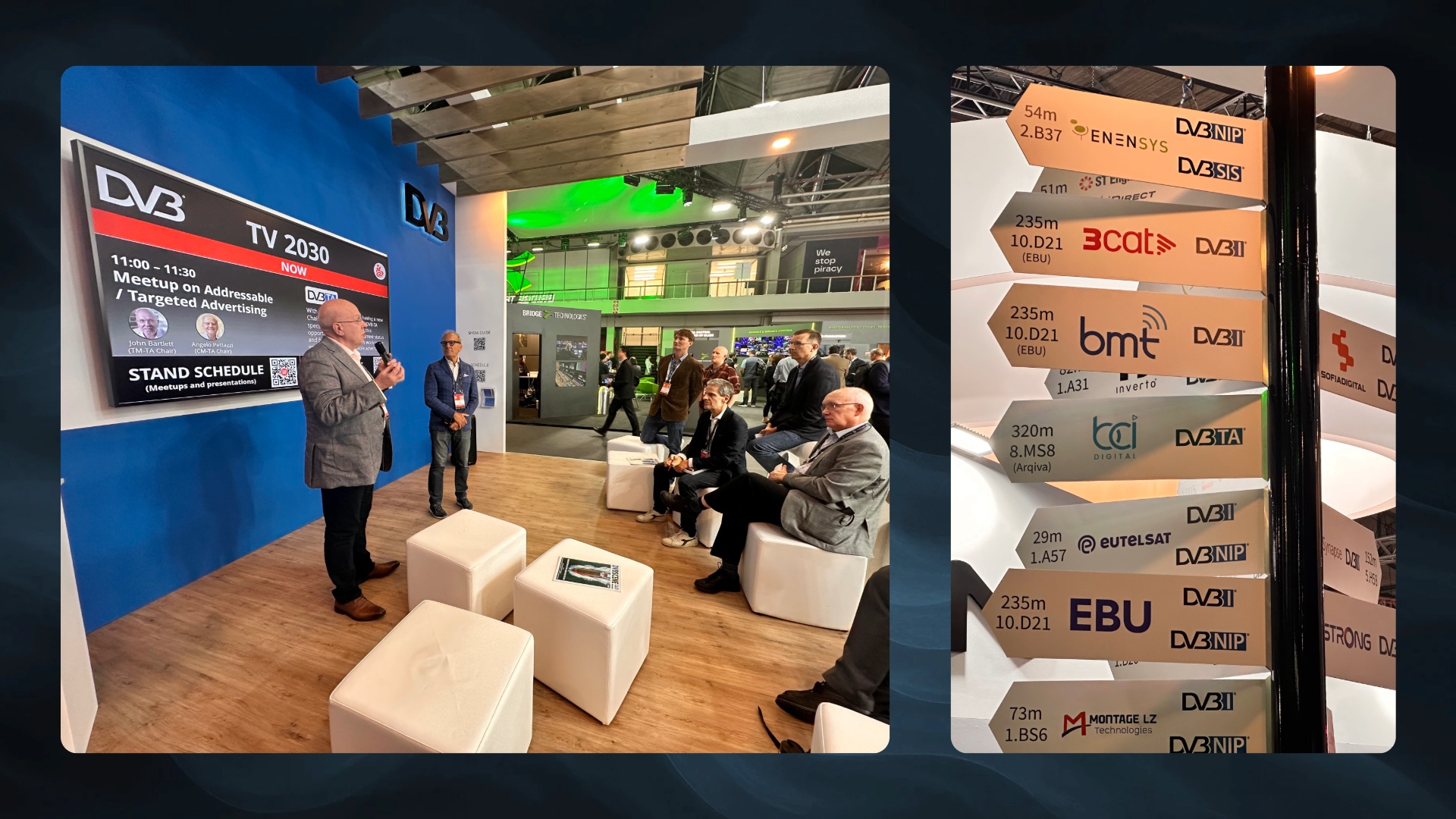 A particular highlight was a joint meet-up hosted on the DVB booth by John Bartlett, BCi Digital’s Founder and CTO, who also serves as Chair of DVB’s Technical Module for Targeted Advertising (TM-TA), alongside Angelo Pettazzi, Chair of DVB’s Commercial Module for Targeted Advertising (CM-TA).
